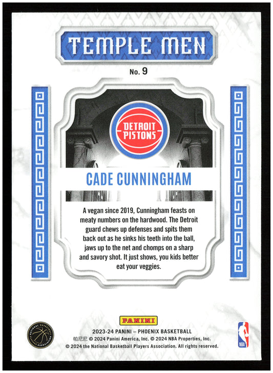 This is a nice example of a 2023-24 Panini Phoenix #9 Cade Cunningham Temple Men Phoenix Red Ice Other important information about this card:In 2023 Cade Cunningham played for the...