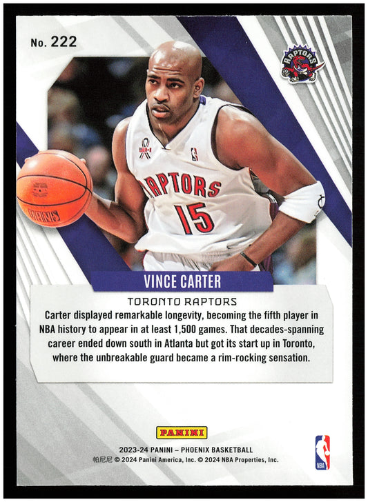 This is a nice example of a 2023-24 Panini Phoenix #222 Vince Carter Phoenix Red Ice Other important information about this card:In 2023 Vince Carter played for the Toronto Raptors.Please...