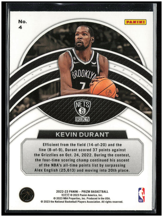This is a nice example of a 2022-23 Panini Prizm #4 Kevin Durant Dominance Other important information about this card:In 2022 Kevin Durant played for the Brooklyn Nets.Please check out...