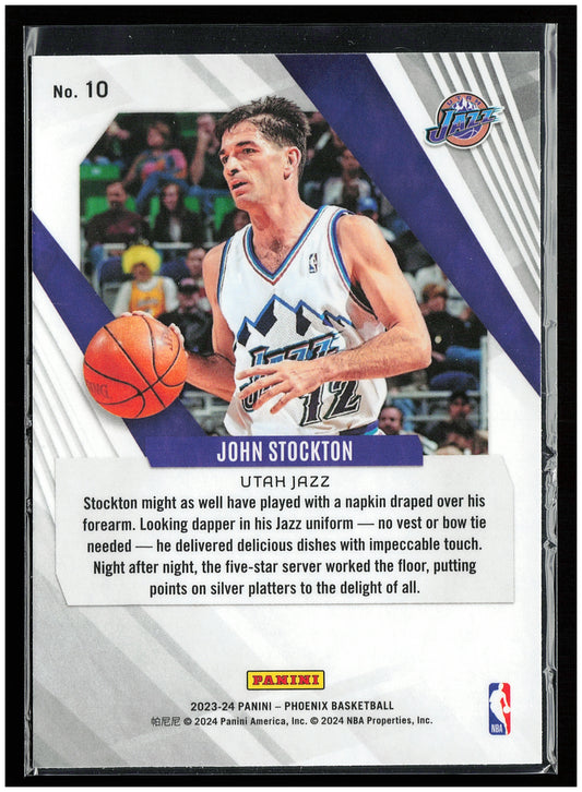 This is a nice example of a 2023-24 Panini Phoenix #10 John Stockton Other important information about this card:In 2023 John Stockton played for the Utah Jazz.Please check out our...