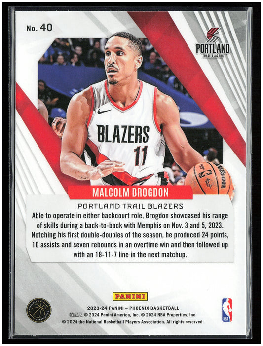This is a nice example of a 2023-24 Panini Phoenix #40 Malcolm Brogdon Other important information about this card:In 2023 Malcolm Brogdon played for the Portland Trail Blazers.Please check out...