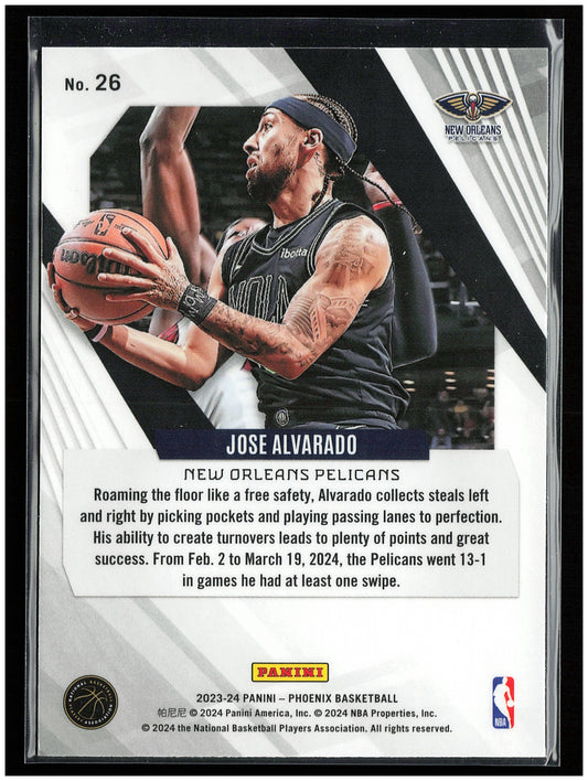 This is a nice example of a 2023-24 Panini Phoenix #26 Jose Alvarado Other important information about this card:In 2023 Jose Alvarado played for the New Orleans Pelicans.Please check out...