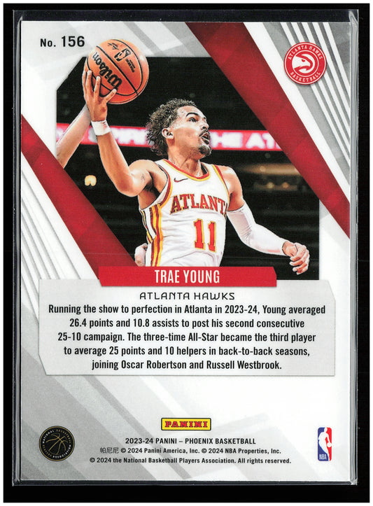 This is a nice example of a 2023-24 Panini Phoenix #156 Trae Young Other important information about this card:In 2023 Trae Young played for the Atlanta Hawks.Please check out our...