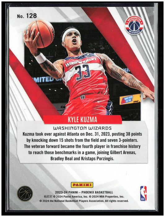 This is a nice example of a 2023-24 Panini Phoenix #128 Kyle Kuzma Other important information about this card:In 2023 Kyle Kuzma played for the Washington Wizards.Please check out our...