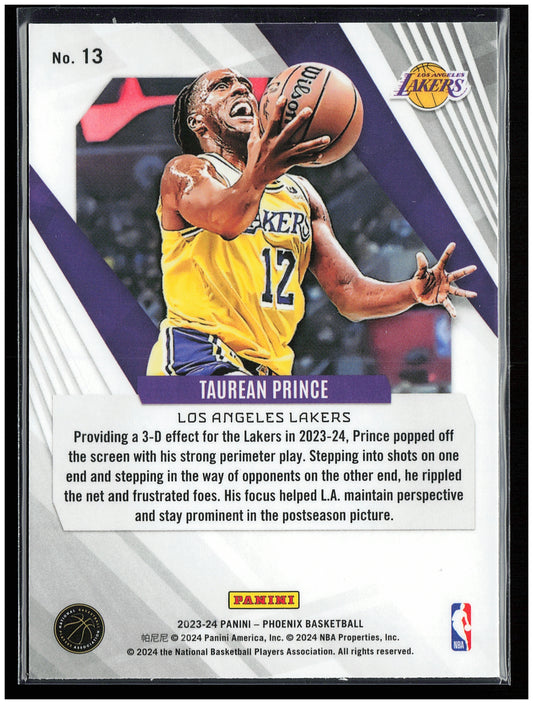 This is a nice example of a 2023-24 Panini Phoenix #13 Taurean Prince Other important information about this card:In 2023 Taurean Prince played for the Los Angeles Lakers.Please check out...