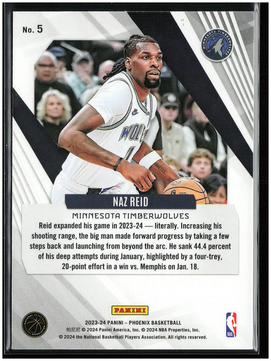 This is a nice example of a 2023-24 Panini Phoenix #5 Naz Reid Phoenix Red Ice Other important information about this card:In 2023 Naz Reid played for the Minnesota Timberwolves.Please...