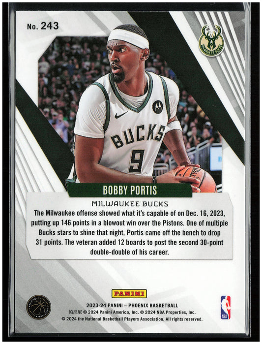 This is a nice example of a 2023-24 Panini Phoenix #243 Bobby Portis Other important information about this card:In 2023 Bobby Portis played for the Milwaukee Bucks.Please check out our...