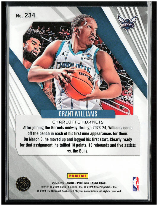 This is a nice example of a 2023-24 Panini Phoenix #234 Grant Williams Other important information about this card:In 2023 Grant Williams played for the Charlotte Hornets.Please check out our...