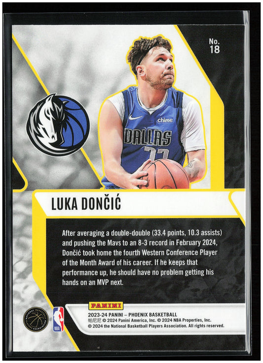 This is a nice example of a 2023-24 Panini Phoenix #18 Luka Doncic Fade To Black Other important information about this card:In 2023 Luka Doncic played for the Dallas Mavericks.Please...