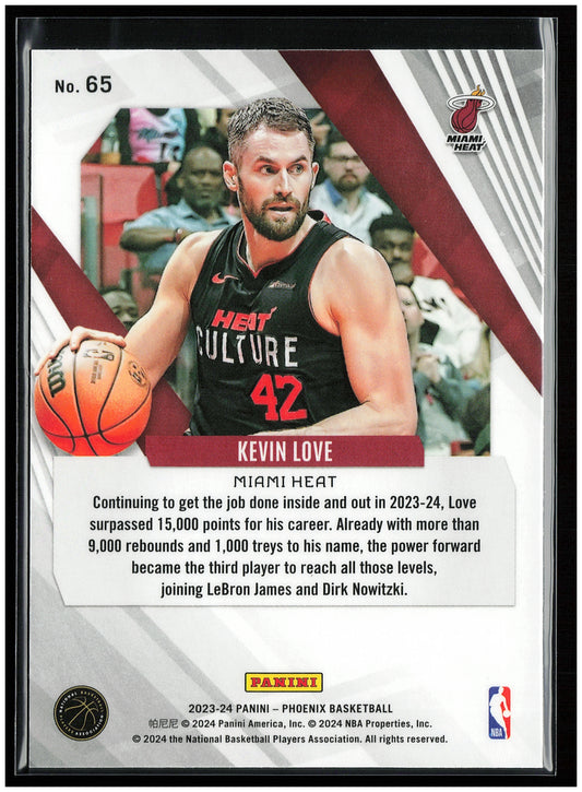 This is a nice example of a 2023-24 Panini Phoenix #65 Kevin Love Other important information about this card:In 2023 Kevin Love played for the Miami Heat.Please check out our...