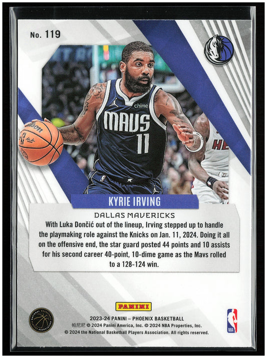 This is a nice example of a 2023-24 Panini Phoenix #119 Kyrie Irving Other important information about this card:In 2023 Kyrie Irving played for the Dallas Mavericks.Please check out our...