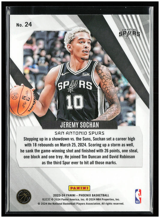 This is a nice example of a 2023-24 Panini Phoenix #24 Jeremy Sochan Other important information about this card:In 2023 Jeremy Sochan played for the San Antonio Spurs.Please check out...