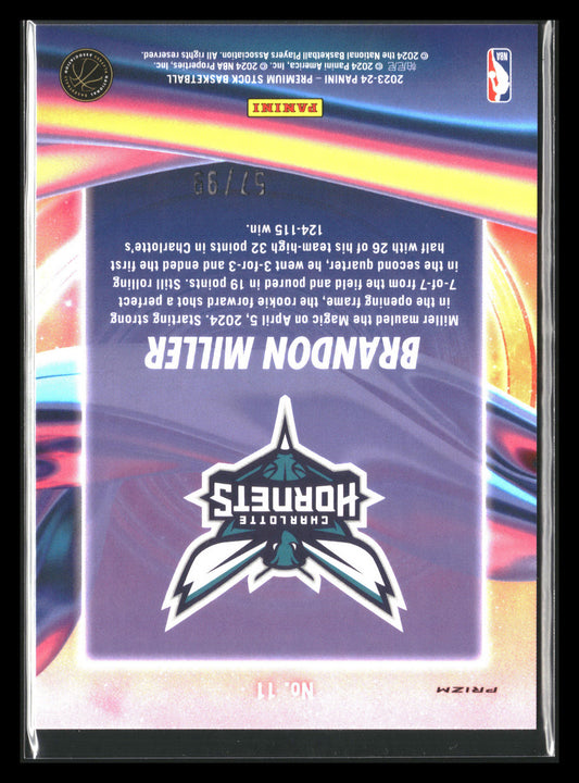 This is a nice example of a Hoops Premium Stock # Brandon Miller Other important information about this card:In 2023 Brandon Miller played for the Charlotte Hornets.Please check out our...