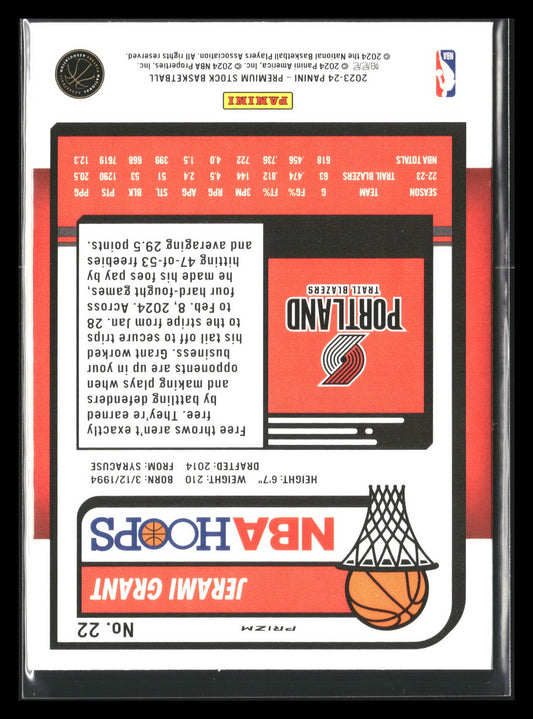 This is a nice example of a Hoops Premium Stock # Jerami Grant Other important information about this card:In 2023 Jerami Grant played for the Portland Trailblazers.Please check out our...