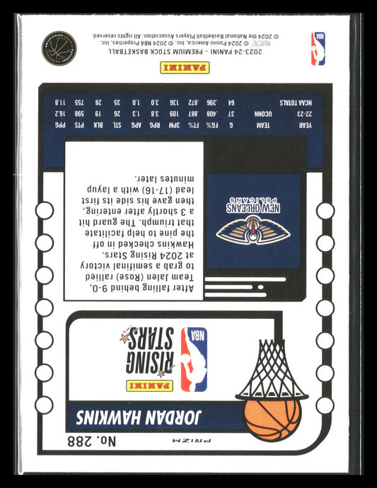 This is a nice example of a 2023-24 Hoops Premium Stock #288 Jordan Hawkins Silver Other important information about this card:In 2023 Jordan Hawkins played for the New Orleans Pelicans.Please...