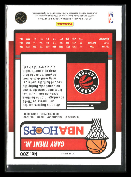 This is a nice example of a Hoops Premium Stock # Gary Trent Jr. Other important information about this card:In 2023 Gary Trent Jr. played for the Toronto Raptors.Please check...