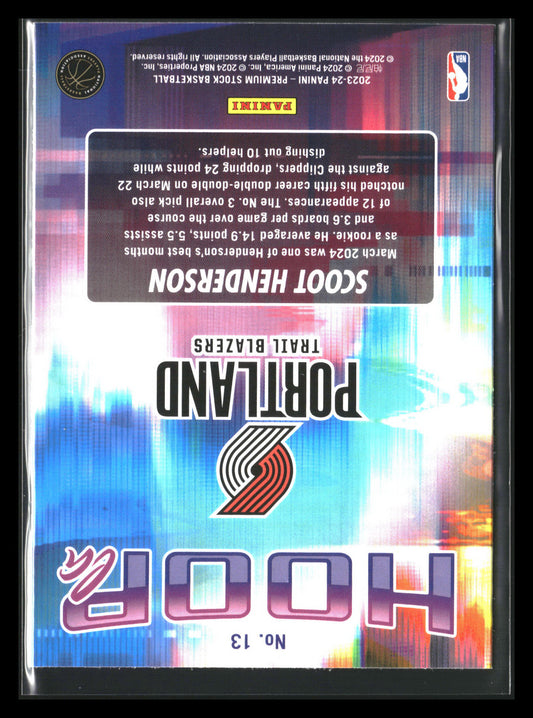 This is a nice example of a Hoops Premium Stock # Scoot Henderson Other important information about this card:In 2023 Scoot Henderson played for the Portland Trailblazers.Please check out our...