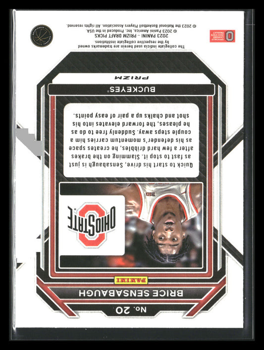 This is a nice example of a 2023 Panini Prizm Draft Picks #20 Brice Sensabaugh Choice Blue/Yellow/Green Other important information about this card:In 2023 Brice Sensabaugh played for the Ohio...