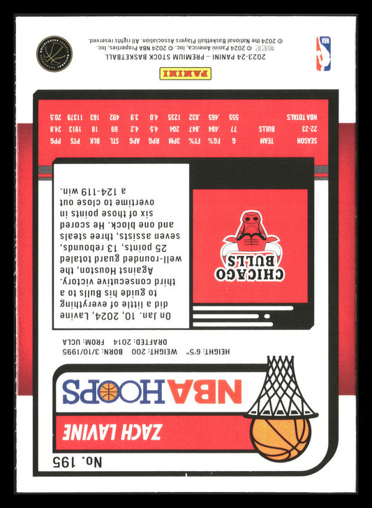 This is a nice example of a 2023-24 Hoops Premium Stock #195 Zach LaVine Other important information about this card:In 2023 Zach LaVine played for the Chicago Bulls.Please check out...