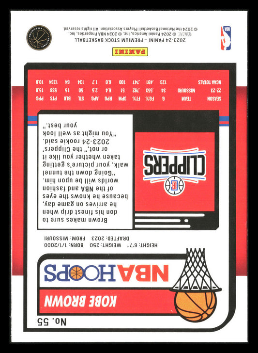 This is a nice example of a 2023-24 Hoops Premium Stock #55 Kobe Brown Other important information about this card:RCIn 2023 Kobe Brown played for the Los Angeles Clippers.Please check...