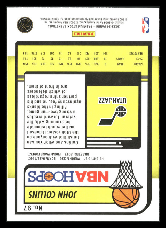 This is a nice example of a 2023-24 Hoops Premium Stock #97 John Collins Other important information about this card:In 2023 John Collins played for the Utah Jazz.Please check out...