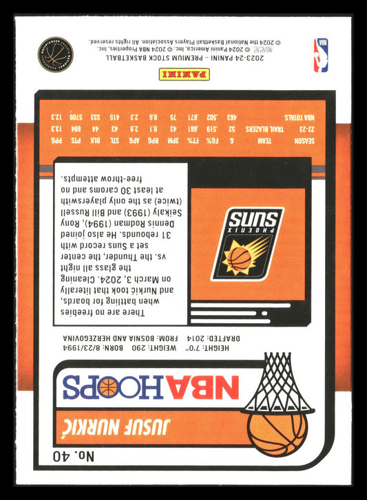 This is a nice example of a 2023-24 Hoops Premium Stock #40 Jusuf Nurkic Other important information about this card:In 2023 Jusuf Nurkic played for the Phoenix Suns.Please check out...