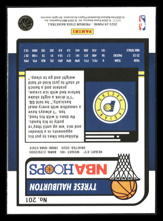 This is a nice example of a 2023-24 Hoops Premium Stock #201 Tyrese Haliburton Other important information about this card:In 2023 Tyrese Haliburton played for the Indiana Pacers.Please check out...