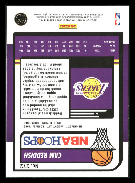 This is a nice example of a 2023-24 Hoops Premium Stock #272 Cam Reddish Other important information about this card:In 2023 Cam Reddish played for the Los Angeles Lakers.Please check...