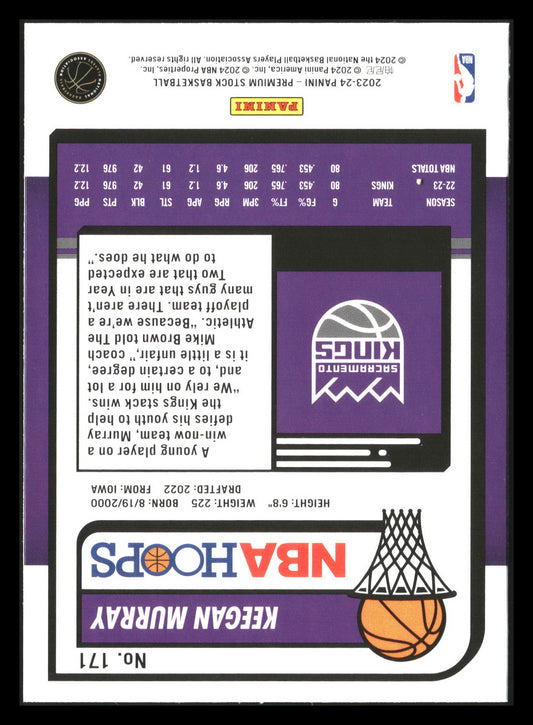 This is a nice example of a 2023-24 Hoops Premium Stock #171 Keegan Murray Other important information about this card:In 2023 Keegan Murray played for the Sacramento Kings.Please check out...