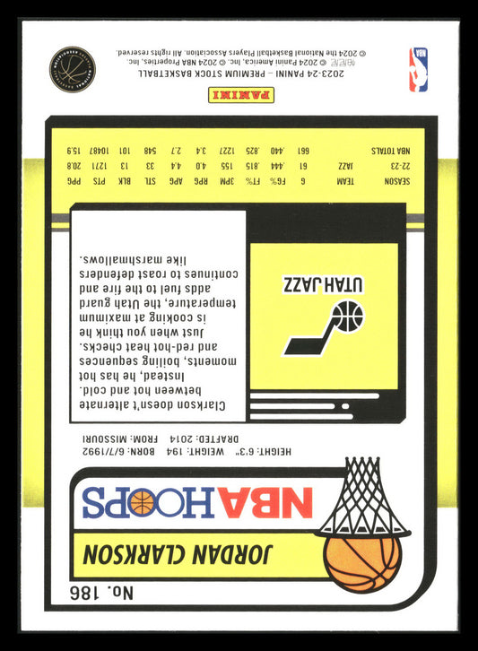 This is a nice example of a 2023-24 Hoops Premium Stock #186 Jordan Clarkson Other important information about this card:In 2023 Jordan Clarkson played for the Utah Jazz.Please check out...