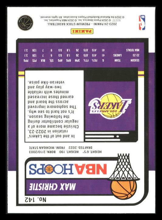 This is a nice example of a 2023-24 Hoops Premium Stock #142 Max Christie Other important information about this card:In 2023 Max Christie played for the Los Angeles Lakers.Please check...