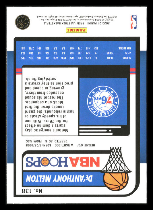 This is a nice example of a 2023-24 Hoops Premium Stock #138 De'Anthony Melton Other important information about this card:In 2023 De'Anthony Melton played for the Philadelphia 76ers.Please check out...