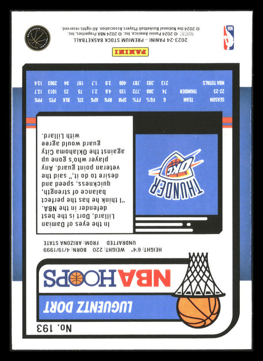 This is a nice example of a 2023-24 Hoops Premium Stock #193 Luguentz Dort Other important information about this card:In 2023 Luguentz Dort played for the Oklahoma City Thunder.Please check...