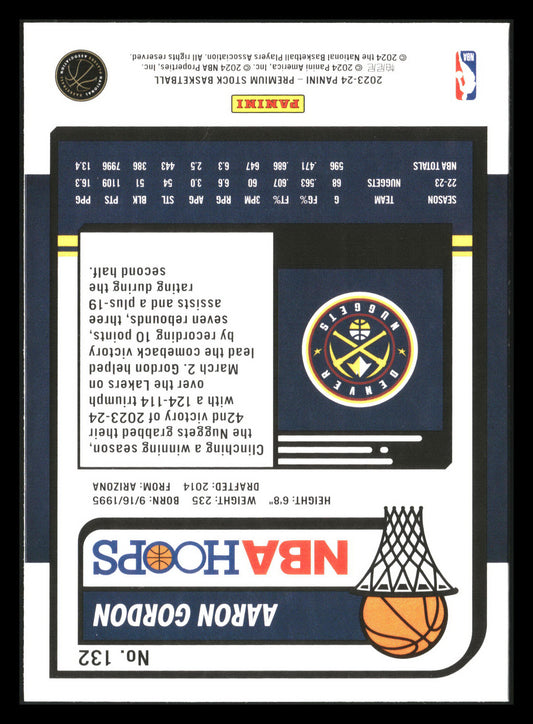 This is a nice example of a 2023-24 Hoops Premium Stock #132 Aaron Gordon Other important information about this card:In 2023 Aaron Gordon played for the Denver Nuggets.Please check out...