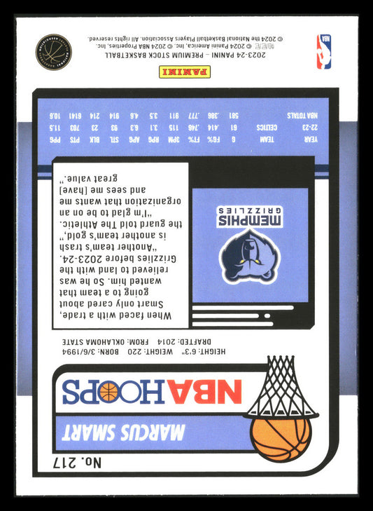 This is a nice example of a 2023-24 Hoops Premium Stock #217 Marcus Smart Other important information about this card:In 2023 Marcus Smart played for the Memphis Grizzlies.Please check out...