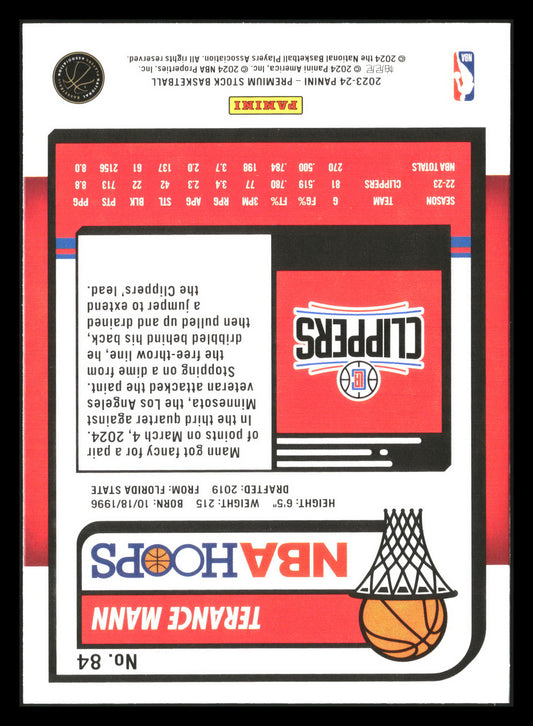 This is a nice example of a 2023-24 Hoops Premium Stock #84 Terance Mann Other important information about this card:In 2023 Terance Mann played for the Los Angeles Clippers.Please check...