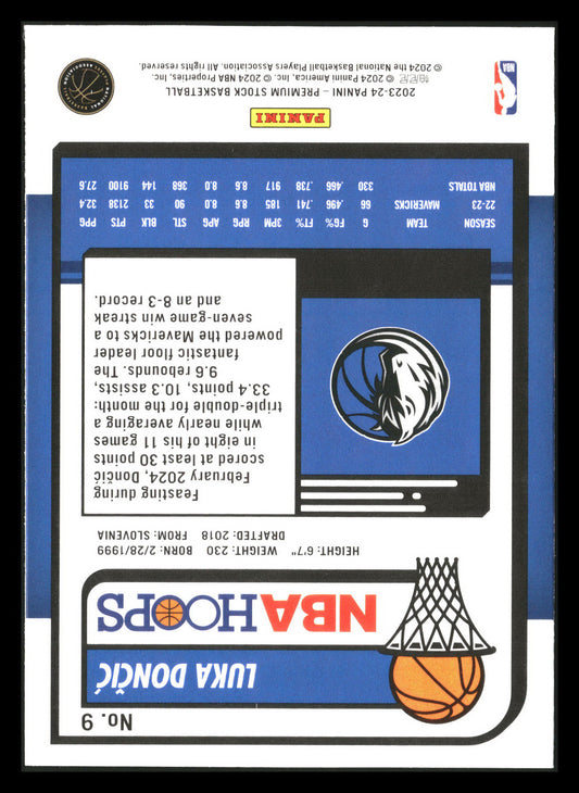 This is a nice example of a 2023-24 Hoops Premium Stock #9 Luka Doncic Other important information about this card:In 2023 Luka Doncic played for the Dallas Mavericks.Please check out...