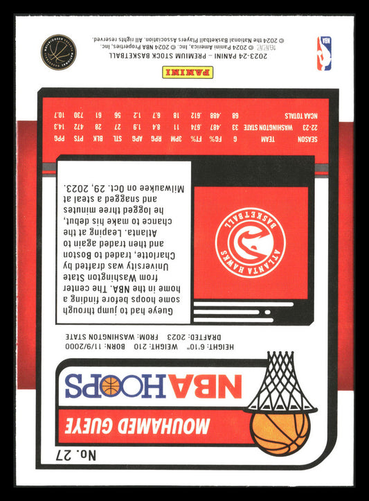 This is a nice example of a 2023-24 Hoops Premium Stock #27 Mouhamed Gueye Other important information about this card:RCIn 2023 Mouhamed Gueye played for the Atlanta Hawks.Please check out...