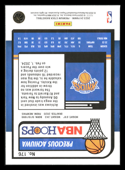 This is a nice example of a 2023-24 Hoops Premium Stock #176 Precious Achiuwa Other important information about this card:In 2023 Precious Achiuwa played for the New York Knicks.Please check...