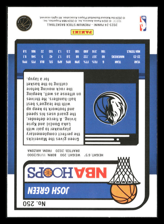This is a nice example of a 2023-24 Hoops Premium Stock #250 Josh Green Other important information about this card:In 2023 Josh Green played for the Dallas Mavericks.Please check out...
