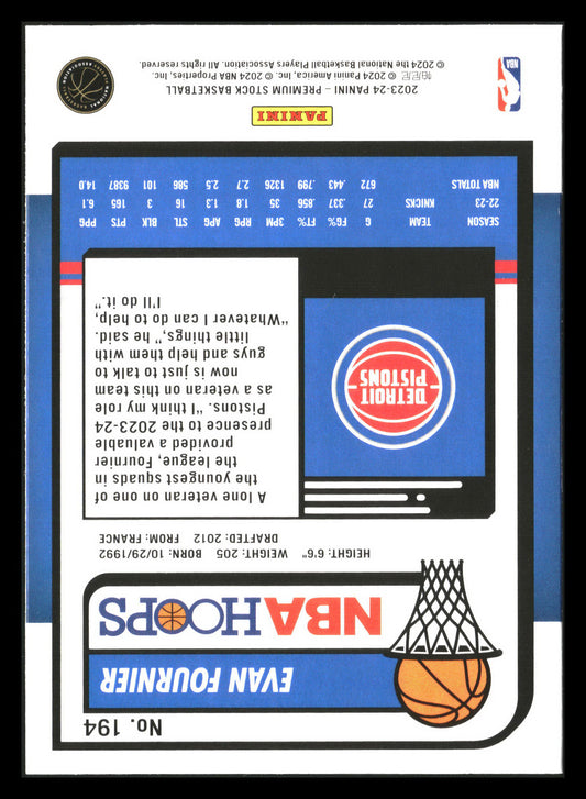 This is a nice example of a 2023-24 Hoops Premium Stock #194 Evan Fournier Other important information about this card:In 2023 Evan Fournier played for the New York Knicks.Please check...