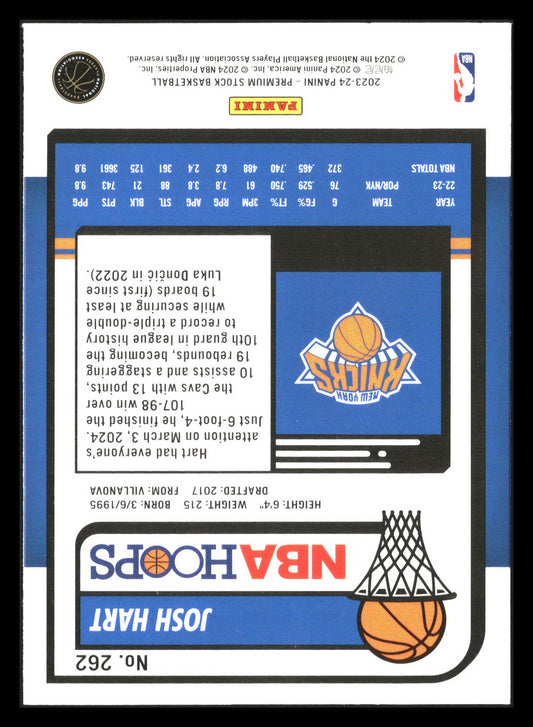 This is a nice example of a 2023-24 Hoops Premium Stock #262 Josh Hart Other important information about this card:In 2023 Josh Hart played for the New York Knicks.Please check...