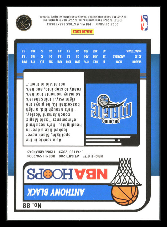 This is a nice example of a 2023-24 Hoops Premium Stock #88 Anthony Black Other important information about this card:RCIn 2023 Anthony Black played for the Orlando Magic.Please check out...