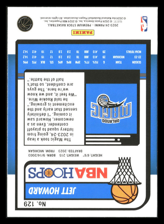 This is a nice example of a 2023-24 Hoops Premium Stock #129 Jett Howard Other important information about this card:RCIn 2023 Jett Howard played for the Orlando Magic.Please check out...
