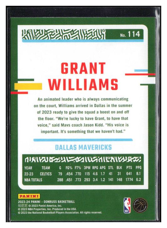 This is a nice example of a 2023-24 Donruss #114 Grant Williams Other important information about this card:In 2023 Grant Williams played for the Dallas Mavericks.Please check out our other...