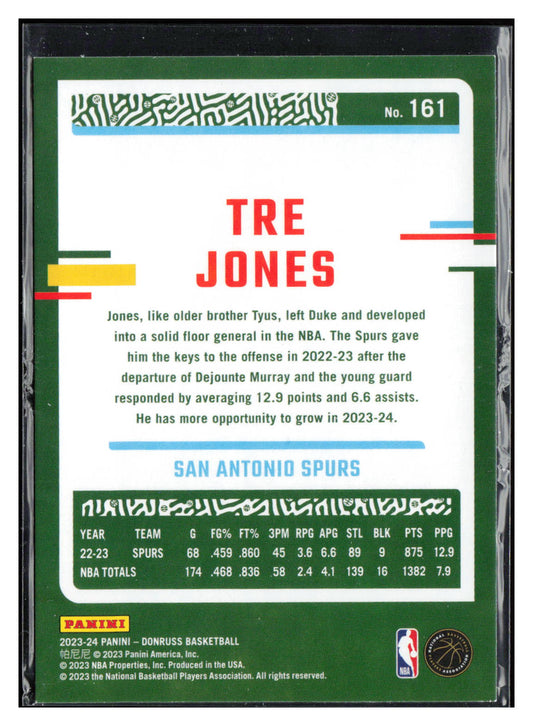 This is a nice example of a 2023-24 Donruss #161 Tre Jones Other important information about this card:In 2023 Tre Jones played for the San Antonio Spurs.Please check out our...