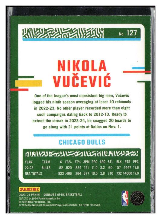 This is a nice example of a 2023-24 Donruss Optic #127 Nikola Vucevic Other important information about this card:In 2023 Nikola Vucevic played for the Chicago Bulls.Please check out our...