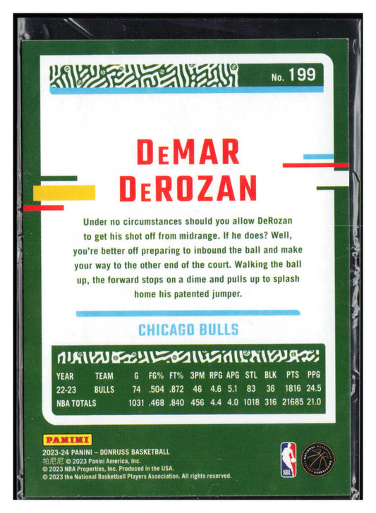 This is a nice example of a 2023-24 Donruss #199 DeMar DeRozan Other important information about this card:In 2023 DeMar DeRozan played for the Chicago Bulls.Please check out our other...