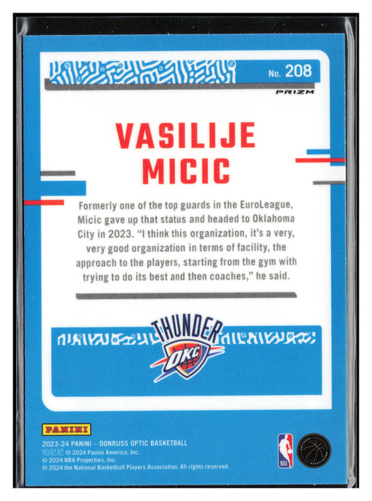 This is a nice example of a 2023-24 Donruss Optic #208 Vasilije Micic Hyper Green Other important information about this card:RCIn 2023 Vasilije Micic played for the Oklahoma City Thunder.Please...