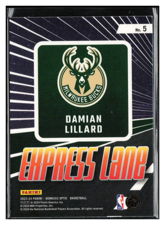 This is a nice example of a 2023-24 Donruss Optic #5 Damian Lillard Express Lane Other important information about this card:In 2023 Damian Lillard played for the Milwaukee Bucks.Please check...